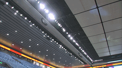 △首都體育館採用最新的聲光電技術,打造“最美的冰”。在場地四角分別布設激光投影儀,將絢麗燈光投影至場館頂部巨型屏幕。當花滑運動員在冰面舞動時,倣佛置身夢境。