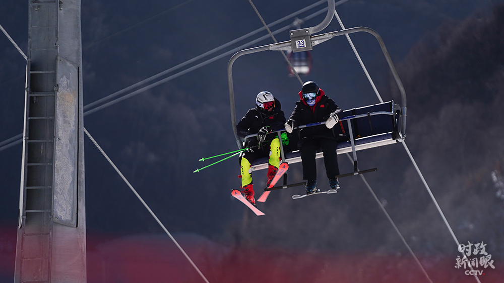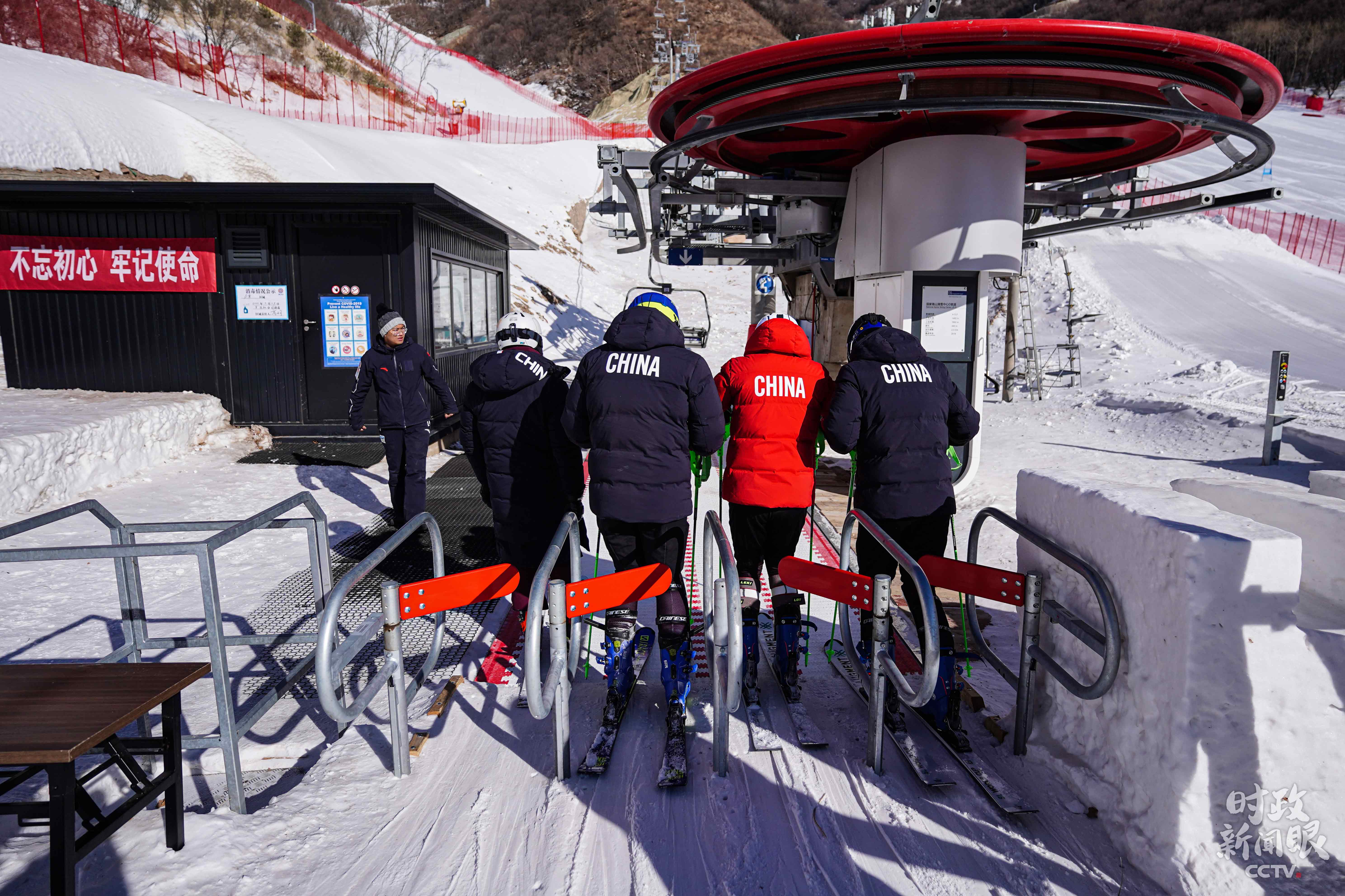 △國家高山滑雪隊員準備搭乘纜車上訓練賽道。(總臺國廣記者李晉拍攝)