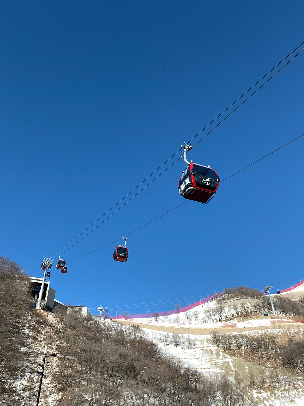 △索道係統由9條索道及2條牽引組成,全長10.3公里,賽時可確保運動員30分鐘內從冬奧村抵達各項目出發點。(總臺國廣記者李晉、央視記者石丞拍攝)