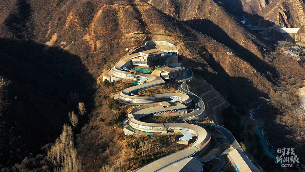 △國家雪車雪橇中心結合自然地形和遮陽設計,研發出一套獨特的“地形氣候保護係統”,能夠有效保護賽道不受陽光、風雪影響。整條賽道宛如一條遊龍,飛騰于山脊之上。(總臺央視記者程鋮拍攝)