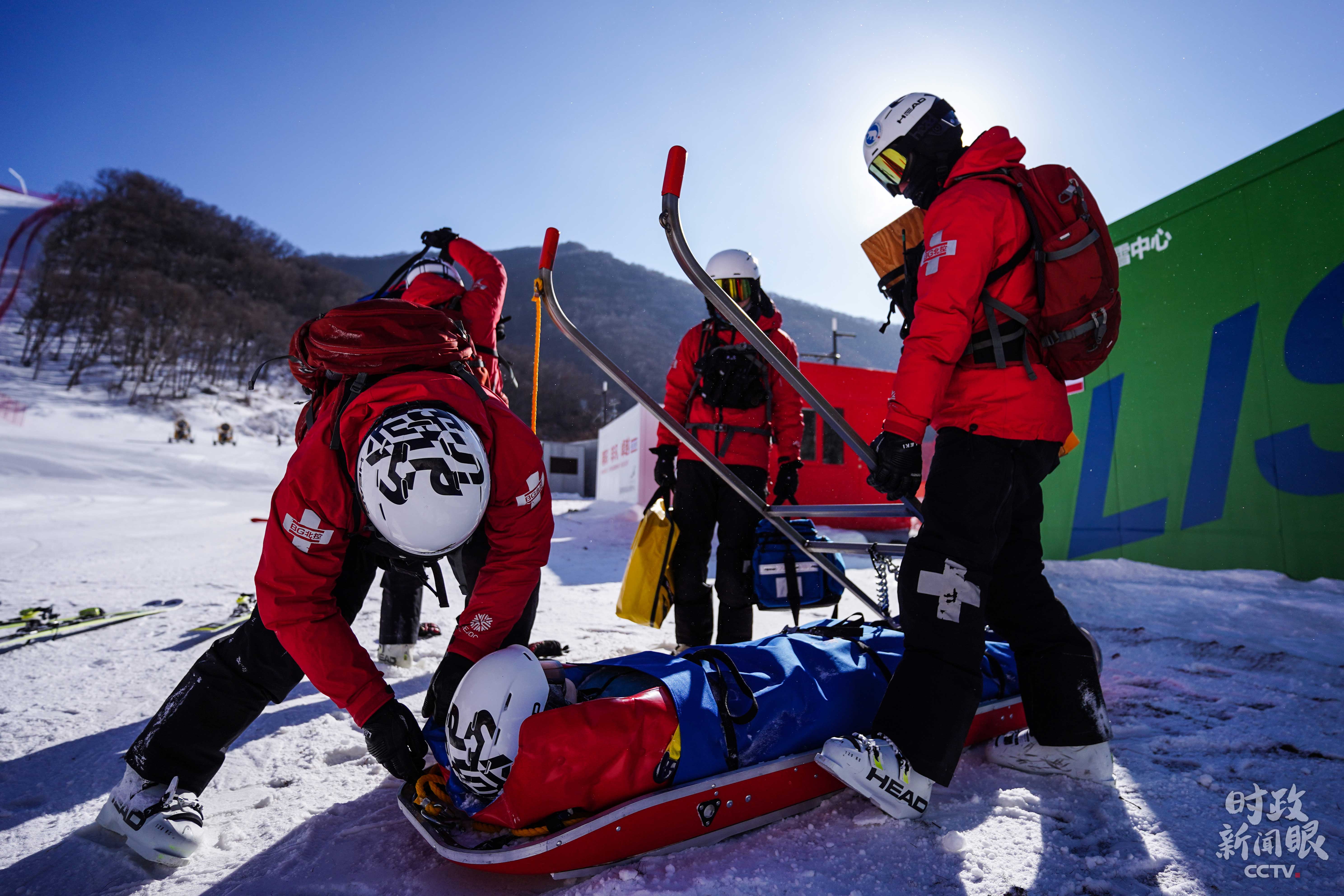 △國家高山滑雪中心救援隊正在演練。(總臺央視記者楊立峰、國廣記者李晉拍攝)