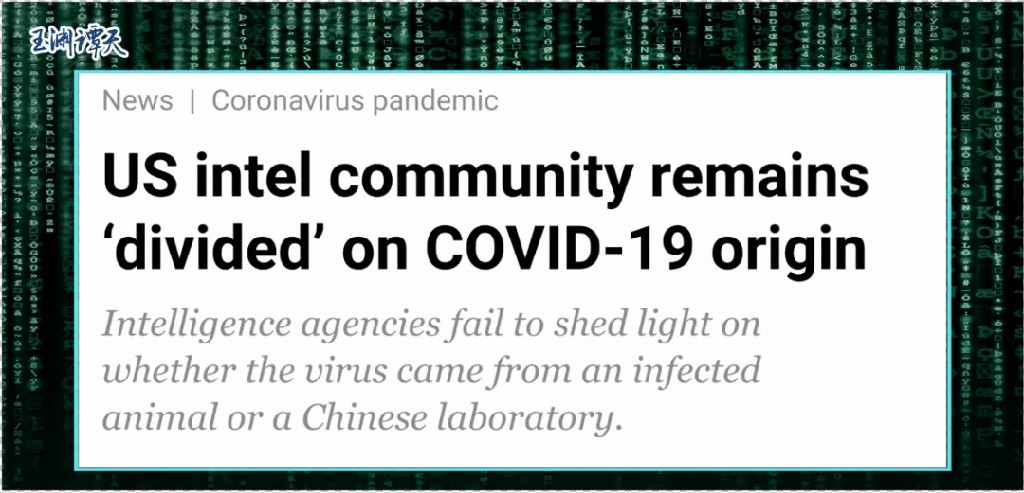 △美國情報界在新冠病毒起源上仍然存在分歧