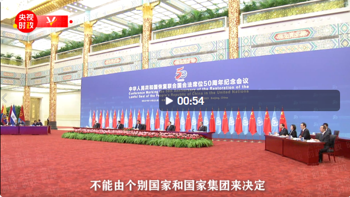 國家主席習近平25日在北京出席中華人民共和國恢復聯合國合法席位50周年紀念會議並發表重要講話。