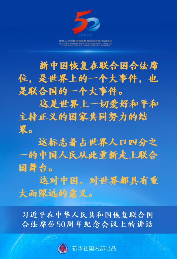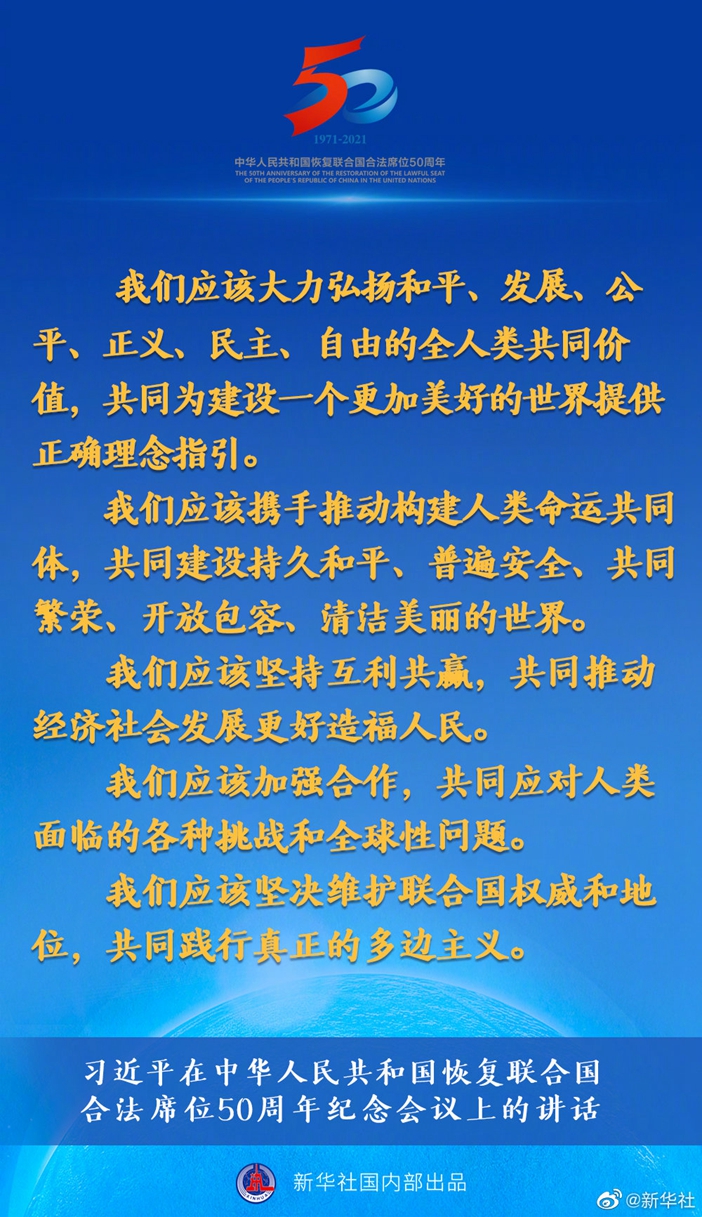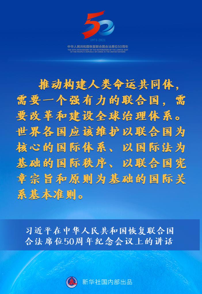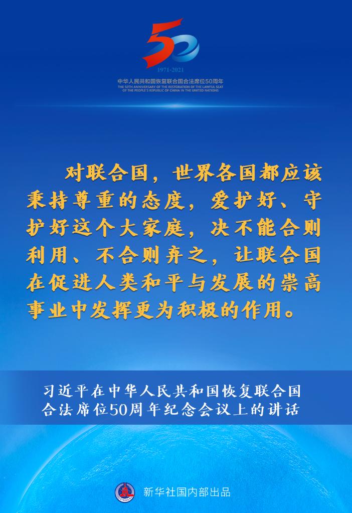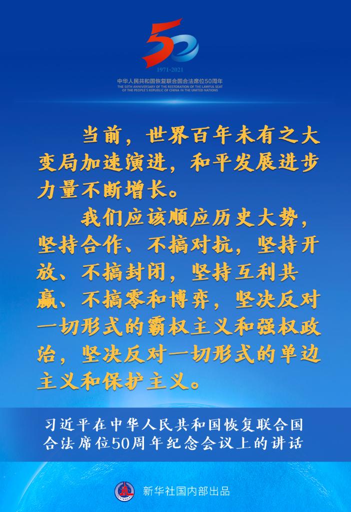 習近平在中華人民共和國恢復聯合國合法席位50周年紀念會議上的講話要點速覽