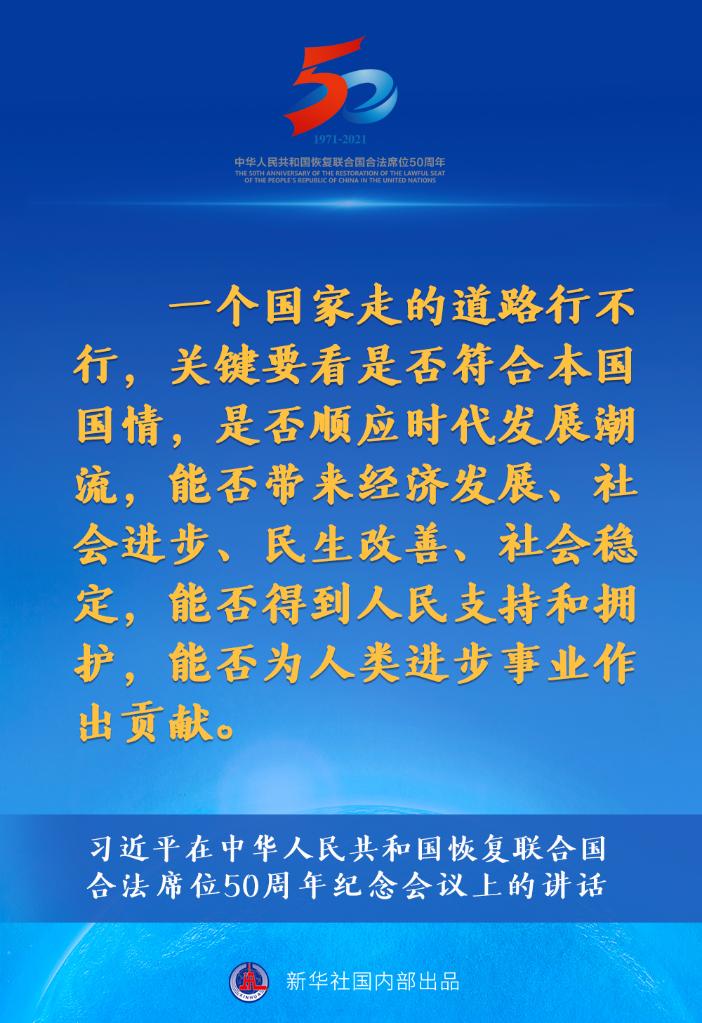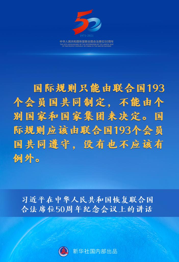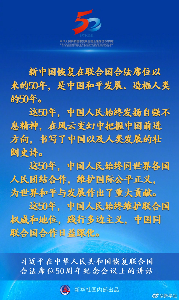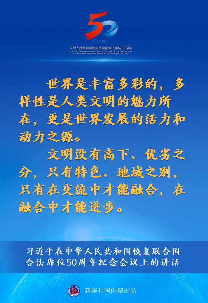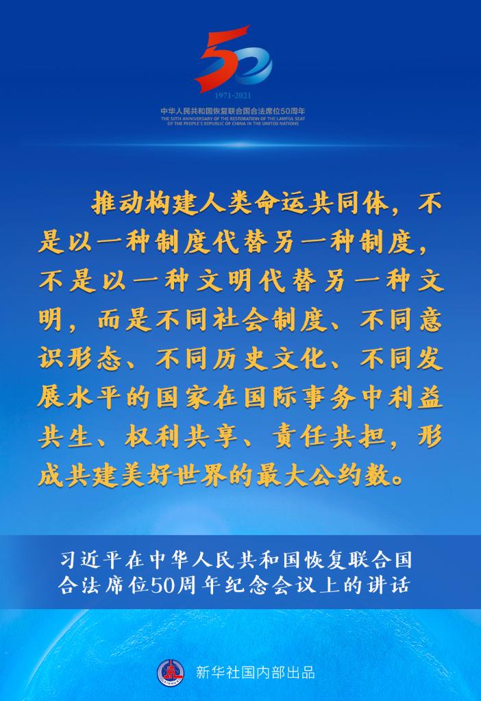 習近平在中華人民共和國恢復聯合國合法席位50周年紀念會議上的講話要點速覽