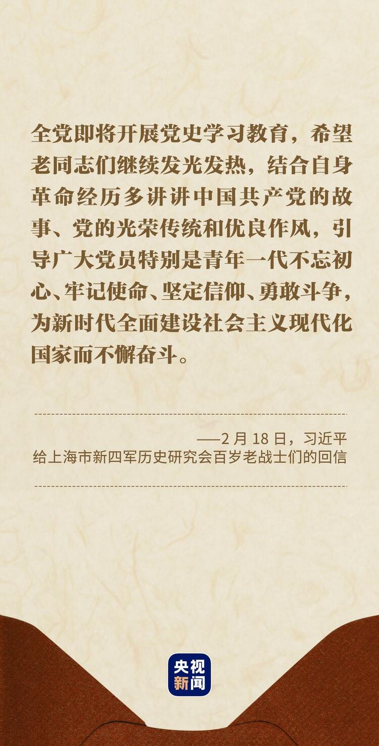 習近平總書記在回信中說:“你們青年時代就投身革命,為黨和人民事業英勇奮鬥,期頤之年仍心係黨史宣傳教育,深厚的愛黨之情令人感佩。”