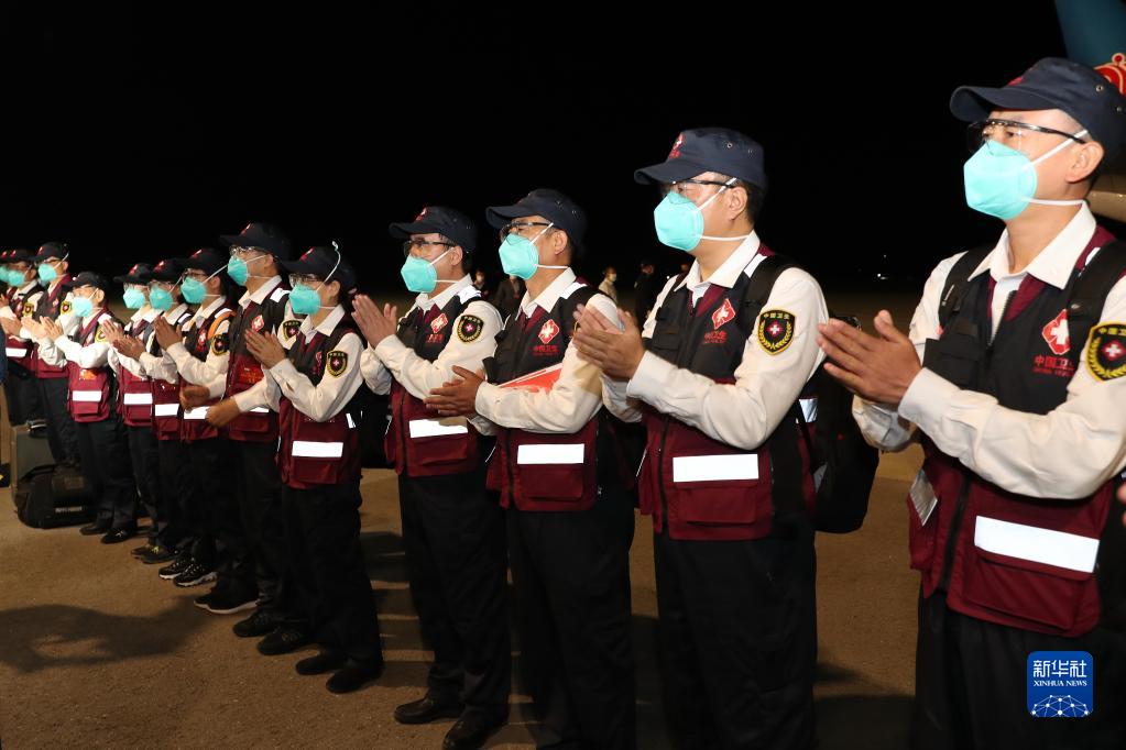 2020年5月24日淩晨,中國政府聯合工作組抵達塔吉克斯坦首都杜尚別國際機場。同機抵達的還有中國政府對塔第三批抗疫援助物資,包括核酸檢測試劑盒、呼吸機、醫用口罩等。新華社發(中國駐塔吉克斯坦使館供圖)