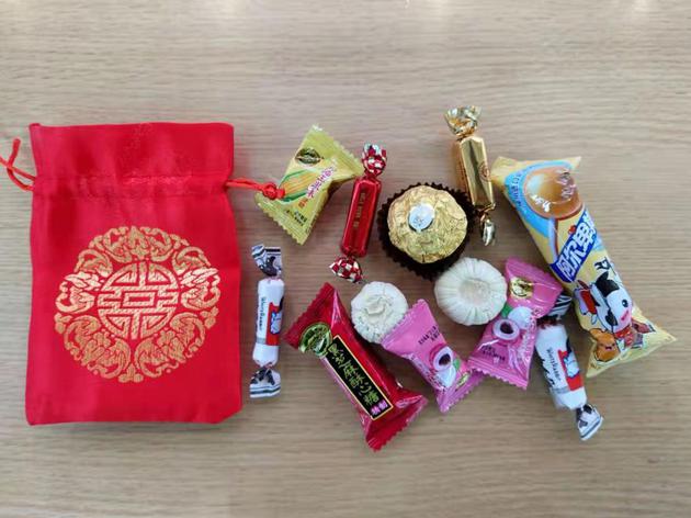 天津理工大學後勤管理處將寓意迎祥納福的糖瓜,用福袋包裝好作為禮物送給在醫院進行康復治療和健康監測的孩子們。 天津理工大學供圖