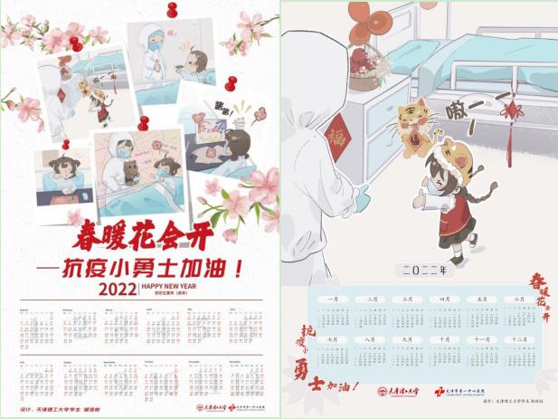 1月25日恰逢農歷小年,天津理工大學根據學生設計的漫畫,于24日連夜趕制出百余份“春暖花會開,抗疫小勇士加油!”2022年主題年歷,作為禮物送給一中心醫院的孩子們。學校後勤管理處得知消息後,也送去了農歷小年寓意迎祥納福糖瓜,用福袋包裝好作為禮物一並送出。1月25日下午,承載著校園愛心的“禮物”,交到了孩子們手中。