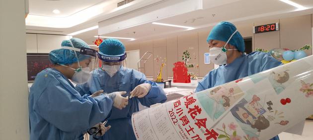 戰“疫”藝術作品制成的年歷、裝有糖瓜的福袋,當它們出現在一中心醫院,猶如冬日里的一抹暖陽,溫暖著每個人的心。孩子們臉上洋溢著開心笑容,樂觀積極的態度也感染著在場所有人。