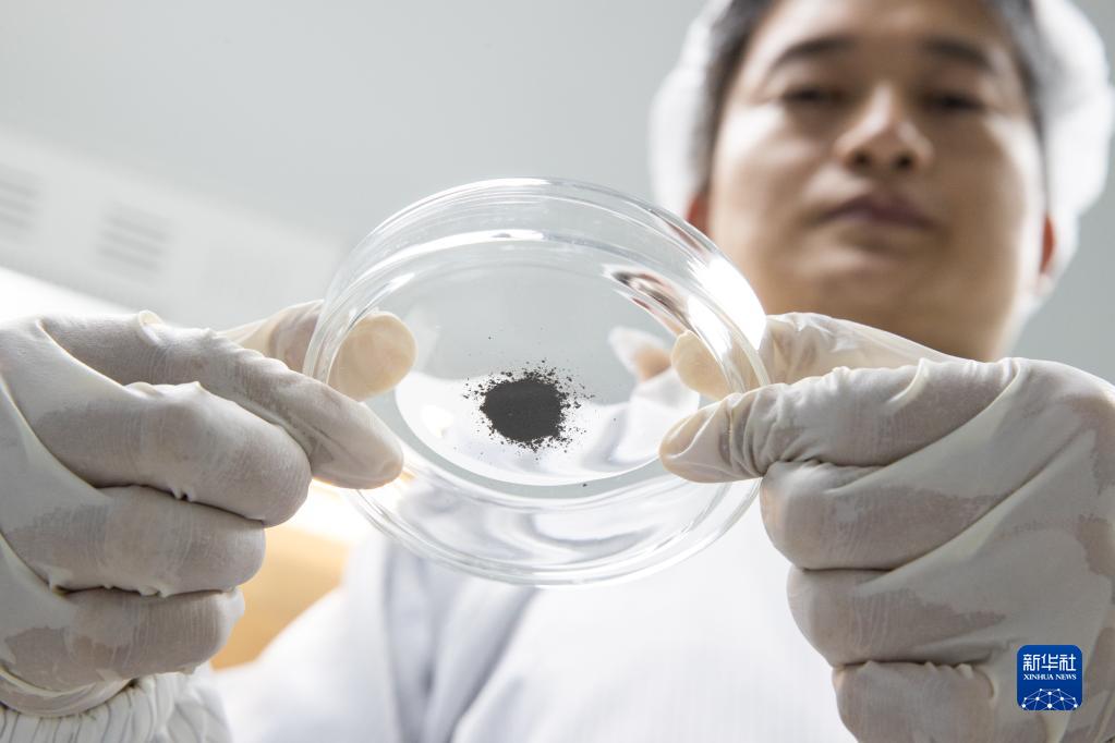 2021年10月15日,在中科院地質與地球物理研究所月球樣品潔凈室,田恆次副研究員在處理月球樣品。新華社記者 金立旺 攝
