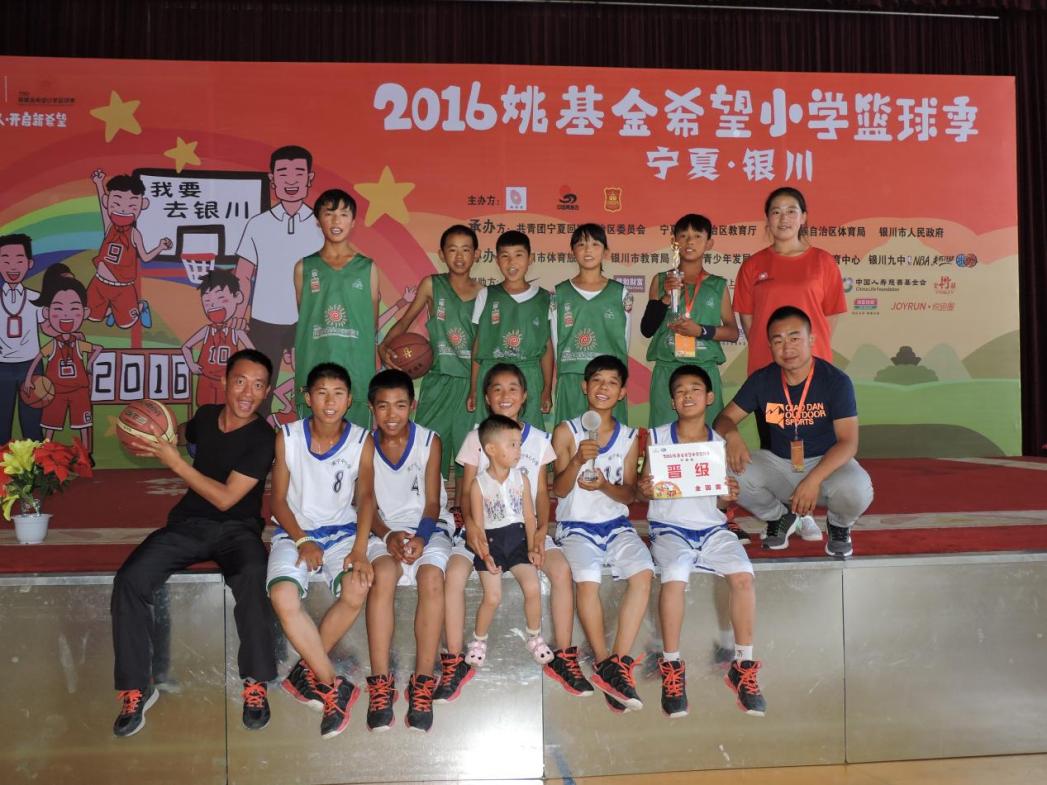 我帶著孩子一起訓練,孩子們很努力,訓練不怕吃苦,有拼勁。2016年,姚基金希望小學籃球聯賽在銀川九中設了賽點,我就帶著孩子們去打比賽,那場比賽孩子們打得特別好,先是初賽出線,到後來以寧夏賽區第一名的成績進入了全國賽,到最後獲得了全國亞軍。