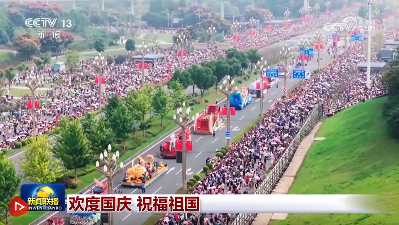 10月1日,在湖北武漢,20多臺大型花車列隊齊發,人們從一組組花車造型中感受時代發展。遼寧沈陽的低空飛行表演,給市民遊客帶來全新的假日體驗。在四川遂寧、廣西南寧、黑龍江綏化等地,人們用一個個歡快的節目、一幅幅精美的剪紙,禮讚新時代。在安徽懷寧,假日期間,30多場惠民演出豐富了大家的文化生活。