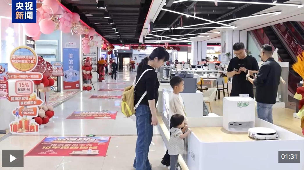 這個假期,在北京、安徽等地的實體賣場,“以舊換新”補貼+企業折扣+門店優惠的復合優惠體係,持續點燃假期消費熱潮。
