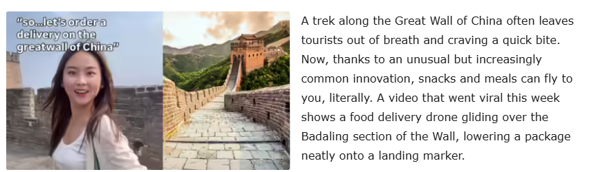 全球媒體聚焦 | 外賣“飛”到長城 外媒熱議中國“低空經濟”領跑全球