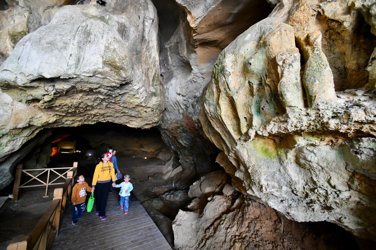 遊客在萬壽岩遺址船帆洞內遊覽。