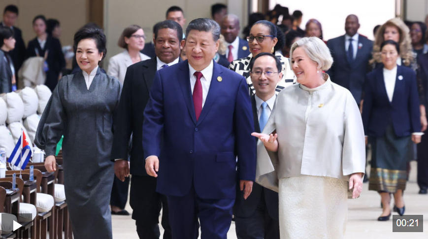 10月13日上午,國家主席習近平在北京國家會議中心出席全球婦女峰會開幕式並發表主旨講話。