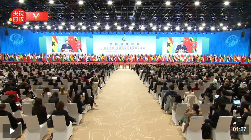 10月13日上午,國家主席習近平在北京國家會議中心出席全球婦女峰會開幕式並發表主旨講話。