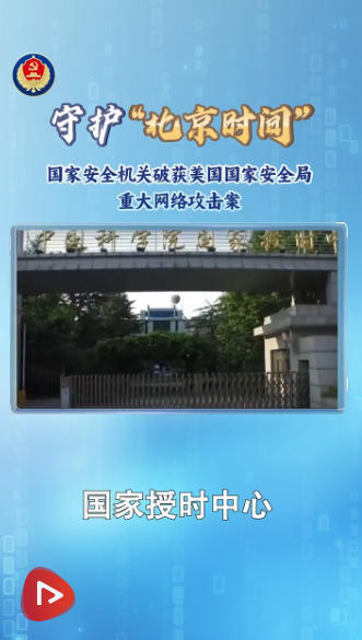 記者從國家安全部了解到,近期,國家安全機關破獲一起美國重大網絡攻擊案,掌握美國國家安全局網絡攻擊入侵中國國家授時中心的鐵證,粉碎美方網攻竊密和滲透破壞的圖謀,全力守護“北京時間”安全。
