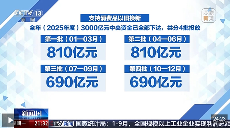 2025年“國補”政策行進至第四季度,今年,國家安排3000億元超長期特別國債用于“以舊換新”補貼,目前已全部下達,資金的使用效果如何?