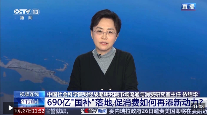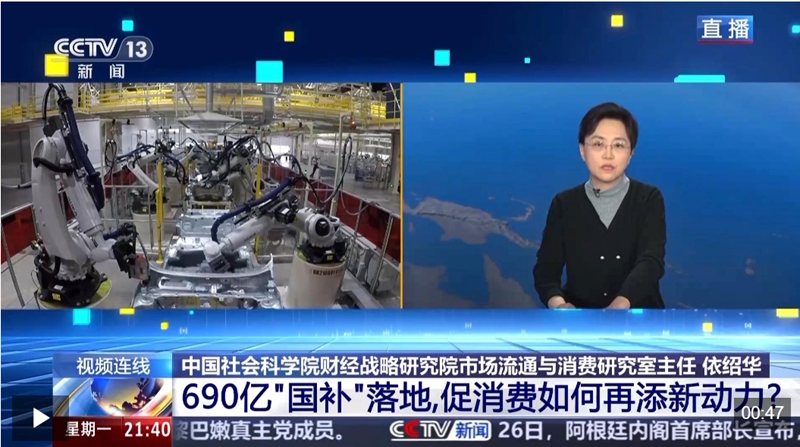 中國社會科學院財經戰略研究院市場流通與消費研究室主任 依紹華:從目前的使用效果來看,有3.3億人次申領了消費品的以舊換新補貼,汽車的以舊換新補貼申領超過了1000萬份。