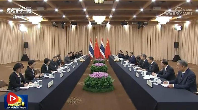 習近平指出,中國和泰國是好鄰居、好朋友、好親戚、好夥伴,常來常往、親如一家。2022年11月我訪問泰國,中泰關係進入構建命運共同體的新階段,兩國友好根基更牢、合作動能更強。今年是中泰建交50周年暨“中泰友誼金色50年”。站在新起點上,雙方要繼往開來,共同推動中泰命運共同體建設走深走實,助力兩國各自現代化進程,為地區和平穩定和發展繁榮作出更大貢獻。