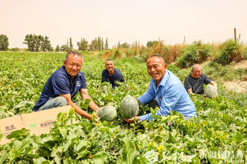 安迪爾河甜瓜收獲頗豐,瓜農笑得合不攏嘴(資料圖片)。王成凱攝