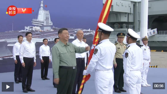 我國第一艘電磁彈射型航空母艦入列 習近平出席入列授旗儀式並登艦視察
