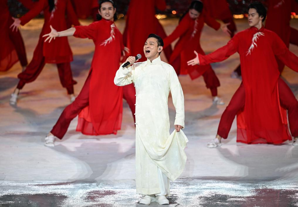 劉德華身著白色唐裝,壓軸唱響熟悉的旋律,讓多少人夢回1997。那一年,為香港回歸創作的《中國人》風靡全國。