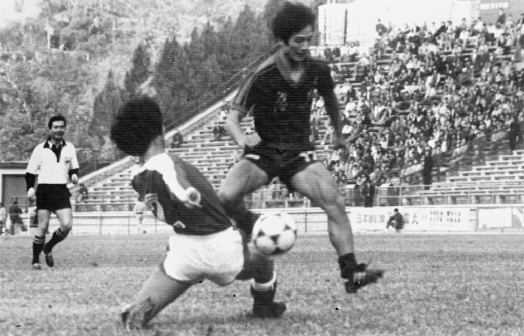 1984年元旦,第六屆省港杯足球賽第一回合比賽在香港政府大球場舉行,廣東隊以1:0取勝。圖為廣東隊古廣明帶球突破對方後衛。新華社記者 黃本強 攝