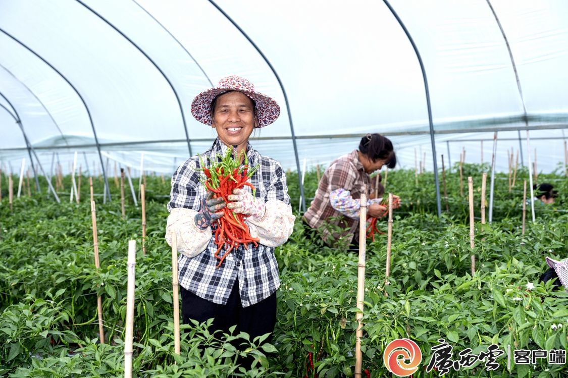 田東縣平馬鎮百谷紅軍村紅線椒基地,村民摘收忙。 周金鵬 攝