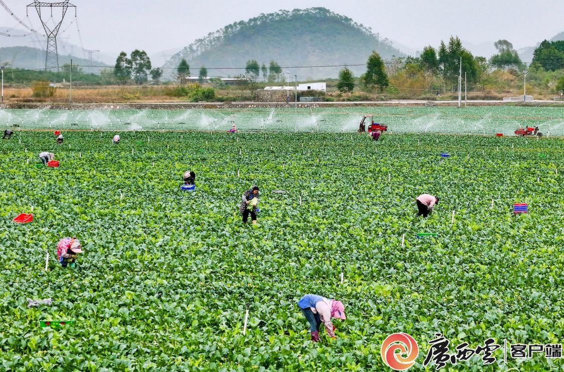11月30日,在位于鐘山縣的賀州農投供港蔬菜基地,數十名工人正忙著採摘菜心。該基地新鮮蔬菜以“當天採、次日達”的速度,通過供港冷鏈直通車直送粵港澳大灣區,保障“菜籃子”供應。黎豪圖 攝
