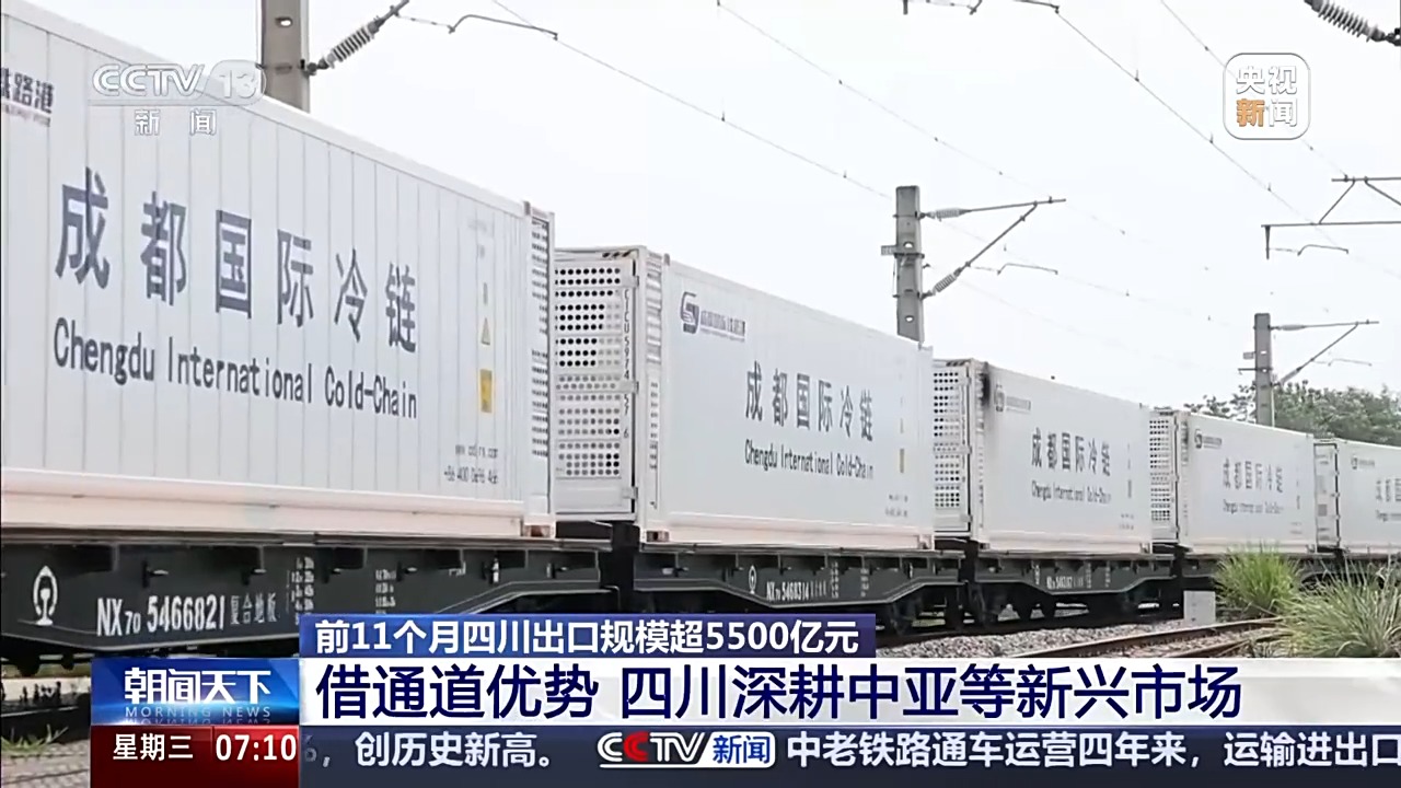 成都海關統計分析處副處長 肖曉文:今年前11個月,四川對中亞市場出口超60億元,同比增長近三成。其中,對哈薩克斯坦出口同比增長1.2倍。對中亞五國出口的產品中,汽車、光伏產品、鋰電池、電視機等佔比較大。