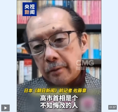 近期,日本首相高市早苗涉臺錯誤言論在日本國內引起強烈不滿。日本《朝日新聞》前記者佐藤章12月16日表示,臺灣問題屬于中國內政,日本若對中國採取無端的先發制人攻擊,根本是“無理取鬧”。