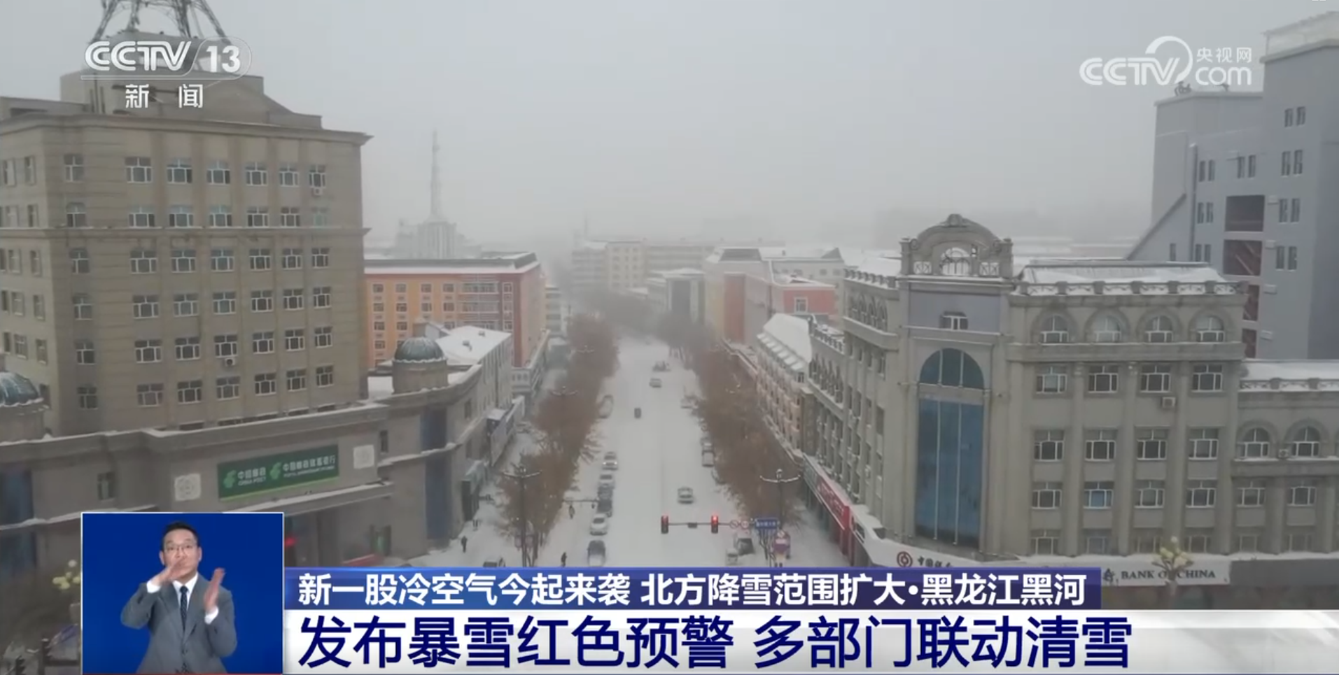 從18日夜間開始,黑龍江黑河的北安市、嫩江市都出現了降雪天氣。19日11時30分,黑河市氣象臺發布暴雪紅色預警。