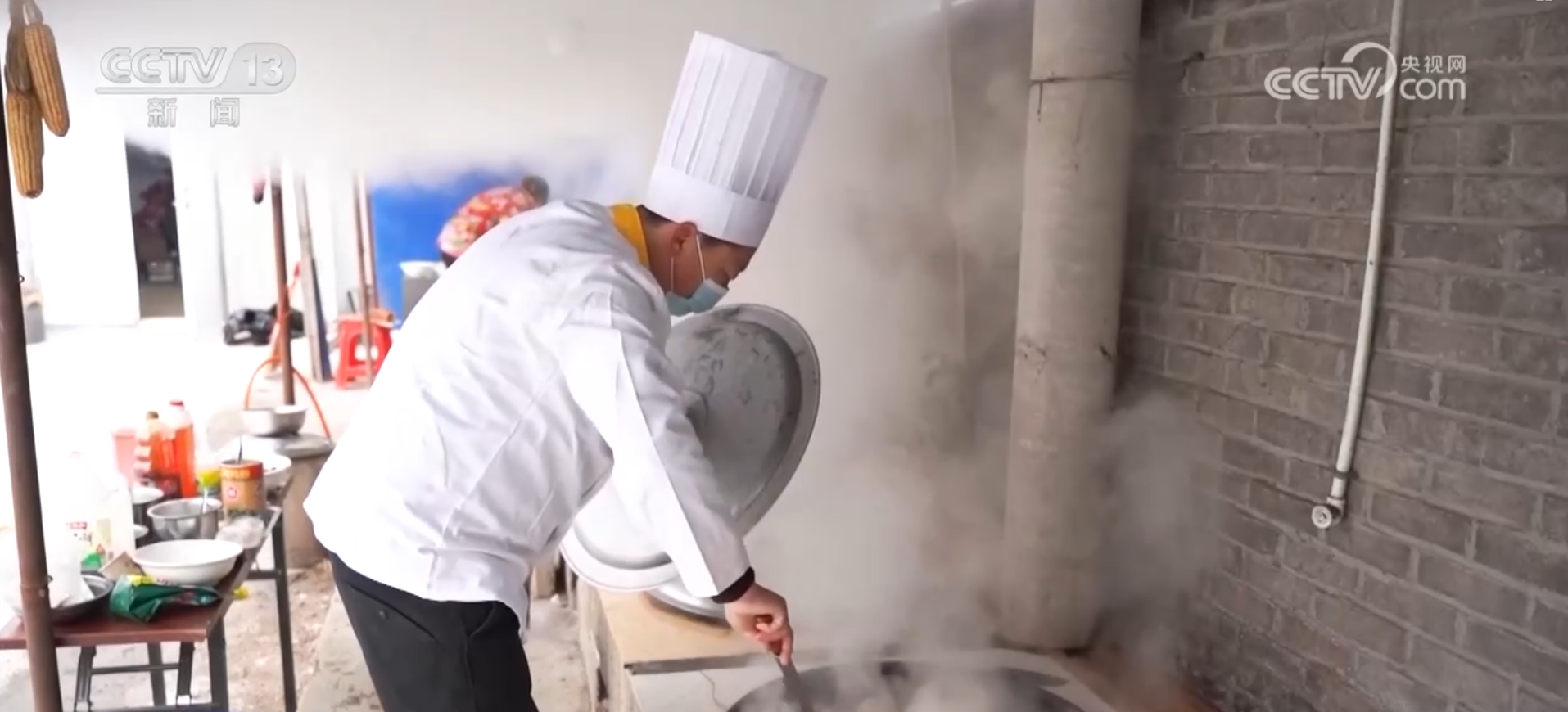 不少年輕人專門來這里拍照打卡。無論是選擇“躺平”還是“卷起來”的姿勢,圍著草垛子,大家都能在歡聲笑語中輕松拍出趣味大片。玩餓了,還可以坐下來品嘗地道的東北美食。中午時分,村里大食堂正燉著笨雞、大鵝、酸菜等特色菜,掀開鍋蓋,香氣撲鼻。