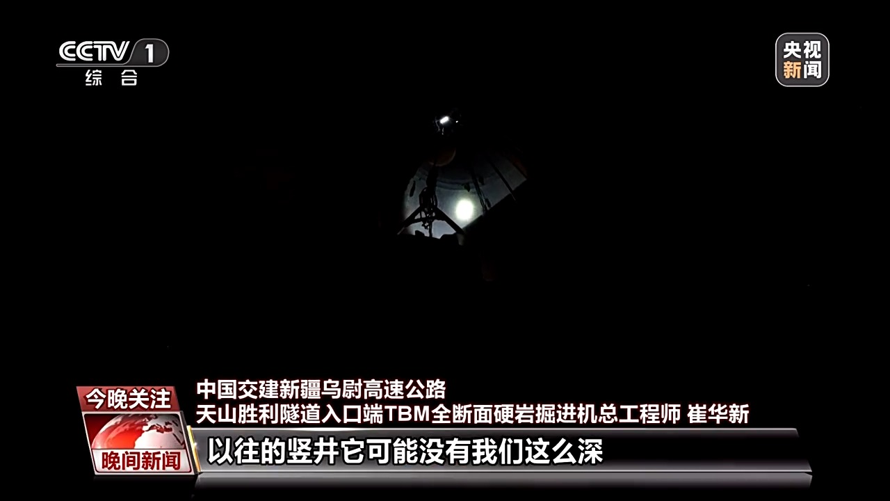 中國交建新疆烏尉高速公路天山勝利隧道入口端TBM全斷面硬岩掘進機總工程師 崔華新:現在我們所處的位置,是我們豎向掘進機開挖完成之後,我們豎井的最後一道工序也就是二襯。隨著我們的施工進度不斷提高,我們經歷黑暗的時間也是越來越短的。