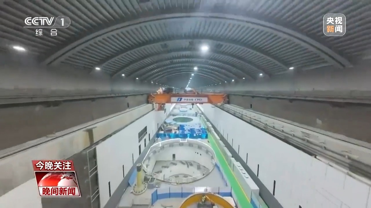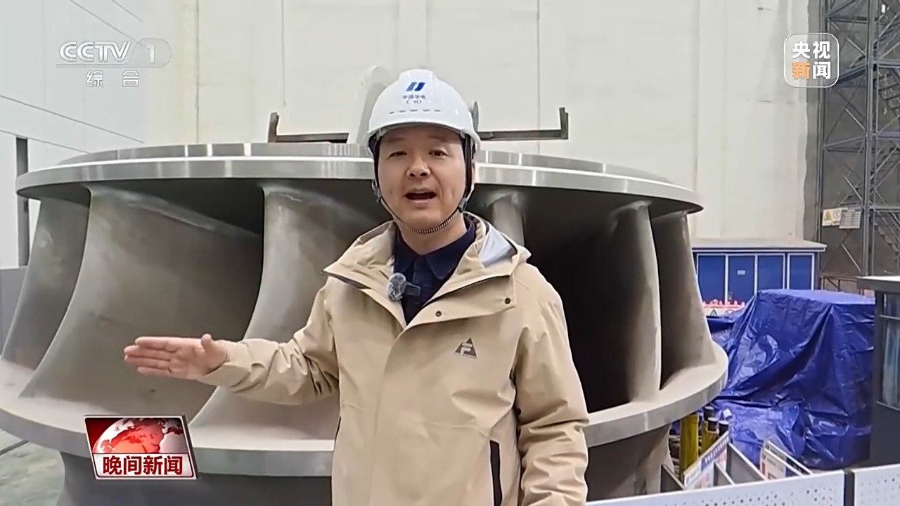 水電站究竟是如何發電的?記者身後就是發電機組最關鍵部件之一的轉輪,澎湃的高壓水流從190米的高處衝擊下來,推動轉輪高速旋轉。它1分鐘通過的水量近2萬立方米,能夠灌滿大概8個標準遊泳池,可滿足超過4萬個三口之家一年的用電需求。