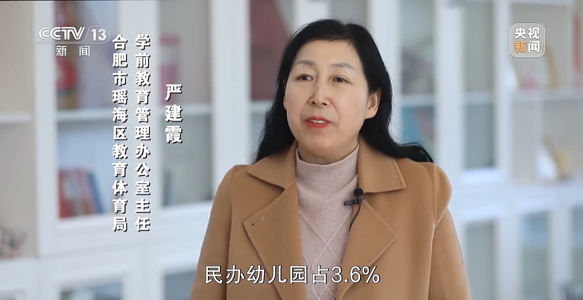 合肥市瑤海區教育體育局學前教育管理辦公室主任 嚴建霞:中央是按照保教費的60%撥付,安徽省也出臺了實施方案,如果是省級辦的公辦幼兒園的資金都由省級來承擔,民辦幼兒園省級財政佔28%,市級資金民辦幼兒園佔3.6%,區級財政民辦幼兒園佔8.4%。這樣通過中央、省、市、區四級資金完成了免費大班教育的經費保障。