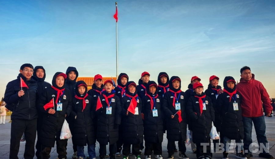“祝祖國繁榮昌盛!扎西德勒!”12月26日清晨的天安門廣場,來自西藏自治區那曲市色尼區青少年足球隊的少年們在剛剛迎著朝陽升起的五星紅旗下,一起大聲為祖國送出衷心的祝福。