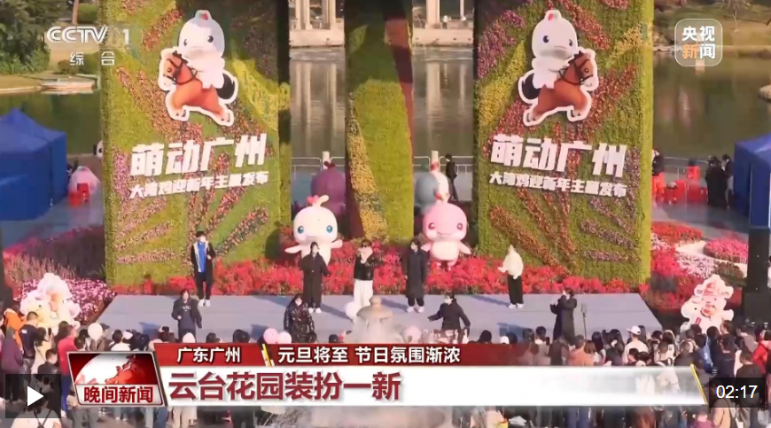在廣東廣州雲臺花園,新年花卉景觀布置完成,各種喜慶的新年裝飾隨處可見,景觀格外醒目。十五運會和殘特奧會吉祥物“喜洋洋”“樂融融”在公園擺放,吸引市民和遊客前來打卡拍照。