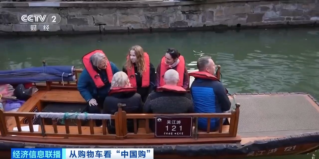 在江蘇蘇州,不少外國遊客乘坐遊船徜徉水巷,沉浸式感受中式生活美學的獨特韻味。