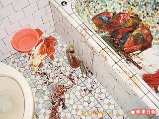 蘇江河打死妻子後,在浴室自殘,浴缸內留下大灘血跡。 來源:臺灣《蘋果日報》