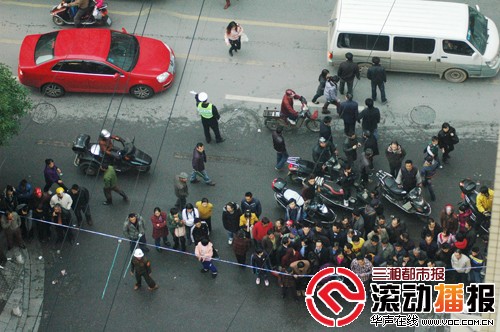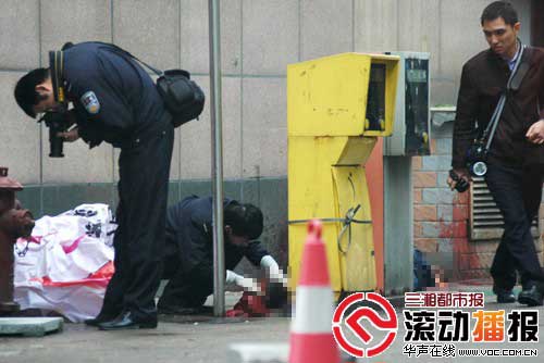 昨日下午3時10分,記者趕到事發現場看到,靠近大樓牆壁的位置,放著一具遺體。遺體身上被塑料膜覆蓋,只露出頭部,黑色頭發。幾米開外,有一只黑色運動鞋。進出大樓的通道有保安把守。而事發地點周圍,都已經被警戒線包圍起來。警戒線內,幾名辦案人員正在忙碌著。因為事發地點位處沿街商用樓外,靠近鬧市,警戒線外,圍觀的市民一直不少。