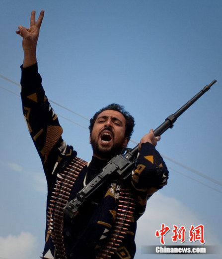 2011年3月21日,班加西市郊,反政府武裝士兵慶祝勝利。