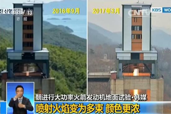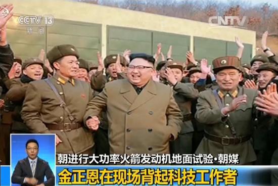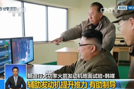 朝鮮中央電視臺主持人:敬愛的最高領導人金正恩同志,對新型大功率發動機地上點火試驗取得成功,表示極大滿意。