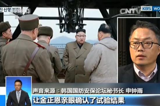 韓國國防安保論壇秘書長 申鐘雨:(朝鮮)完成了把發動機裝載到洲際彈道導彈上的最後一個階段,即裝載輔助發動機後,讓金正恩親眼確認了試驗結果。