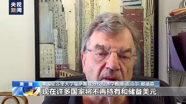 美國密蘇里大學堪薩斯城分校經濟學教授 邁克爾·赫德森:當各國無法支付他們的外債時,人們會說,我希望我們的國家能把我們自己的經濟放在第一位。現在許多國家將不再持有和儲備美元,而是要建立貨幣互換,用對方的貨幣進行交易,“去美元化”正在發生中,未來的規則不會是美國的新自由主義金融規則。我們希望未來各國可以獨立地建立一套互利共贏體係,而不是將其經濟盈余交給美國。