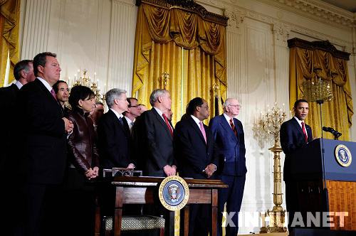 2月6日,美國總統奧巴馬(右一)在白宮發表講話,宣布經濟復蘇顧問委員會正式成立。新華社記者張岩攝