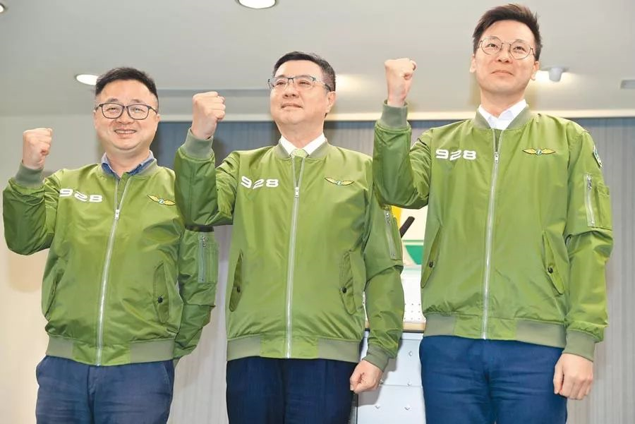 資料圖:民進黨主席卓榮泰(中)、秘書長羅文嘉(左)與副秘書長林飛帆(右)(圖源:“中國時報”)